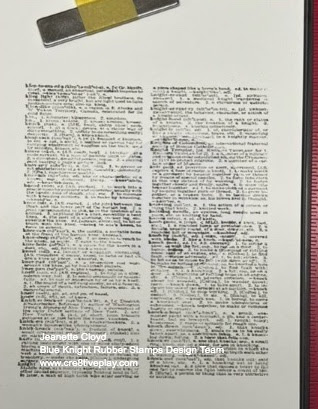 I then placed the label portion of the removable mask inside the "frame" and then removed the outer piece so I could stamp the Dictionary Page onto the piece of cardstock.